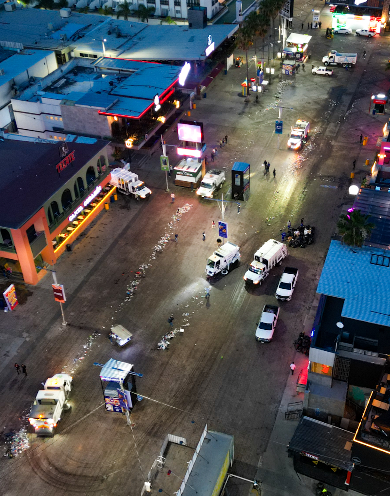 Para este primer operativo, la Secretaría de Servicios Públicos dispuso de 45 colaboradores de la Dirección de Aseo y Limpia, apoyados con 2 hidrolavadoras, 7 barredoras mecánicas y 2 pipas de agua proporcionadas por la Dirección de Parques y Jardines.