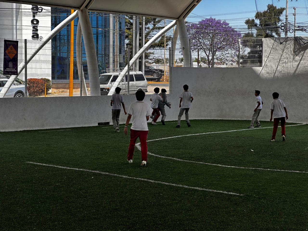 El presidente municipal de Aguascalientes, Leo Montañez, a través de la Secretaría de Obras Públicas, impulsó la rehabilitación del pasto sintético en la cancha de fútbol 7 ubicada en Canal Interceptor, en la esquina con avenida Universidad, en la zona de la colonia Unión Ganadera.