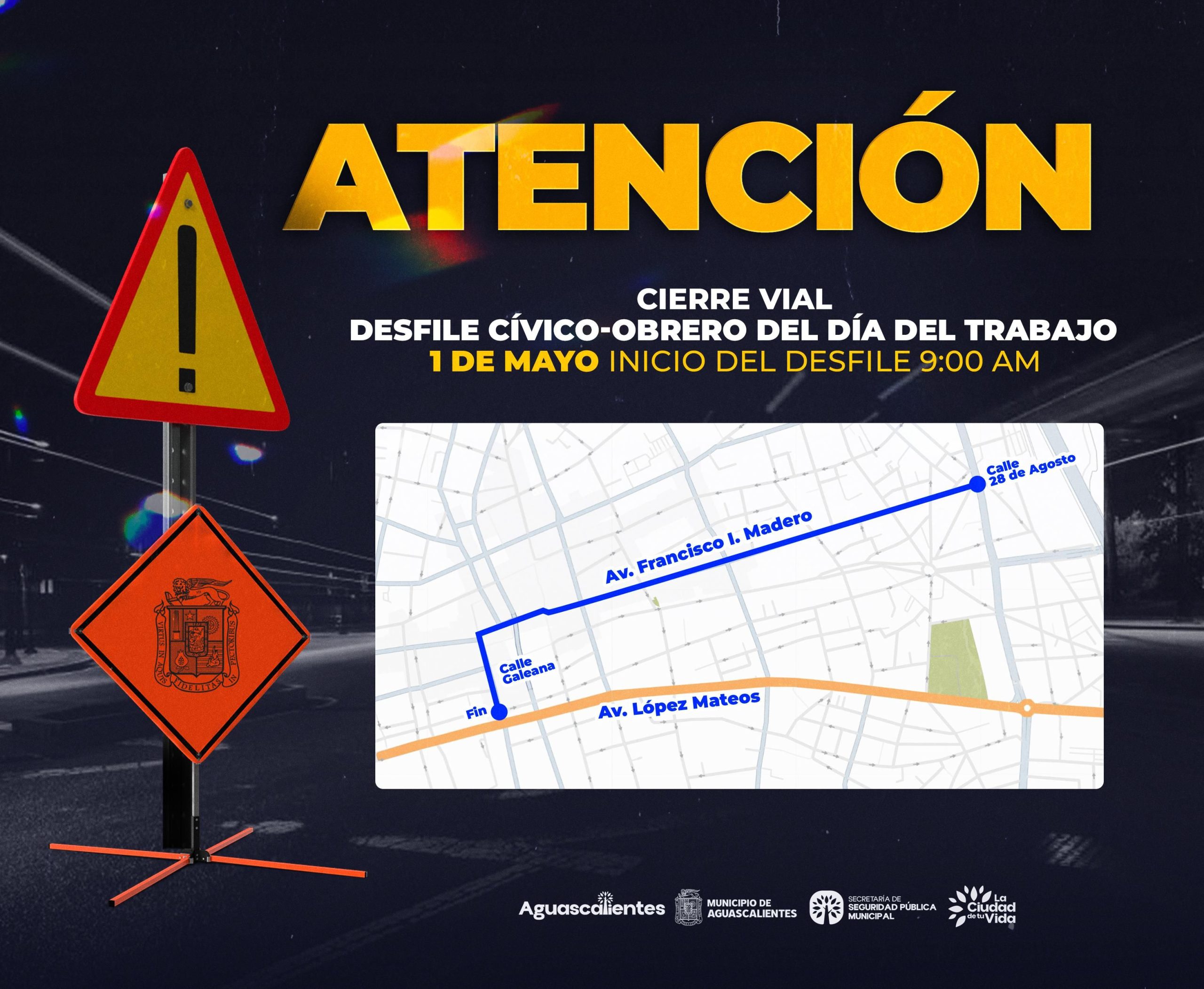 La Secretaría de Seguridad Pública Municipal (SSPM), a través de la Dirección de Movilidad, informa a la ciudadanía sobre el operativo vial programado con motivo del desfile cívico-obrero del Día del Trabajo, el cual se llevará a cabo este viernes 1 de mayo a partir de las 9:00 horas.