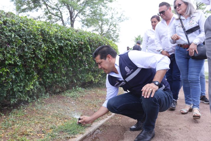 Ago08 SUPERVISA EL PRESIDENTE LEONARDO MONTAÑEZ FUNCIONAMIENTO DE LÍNEA DE RIEGO CON AGUA TRATADA EN SANTA MÓNICA